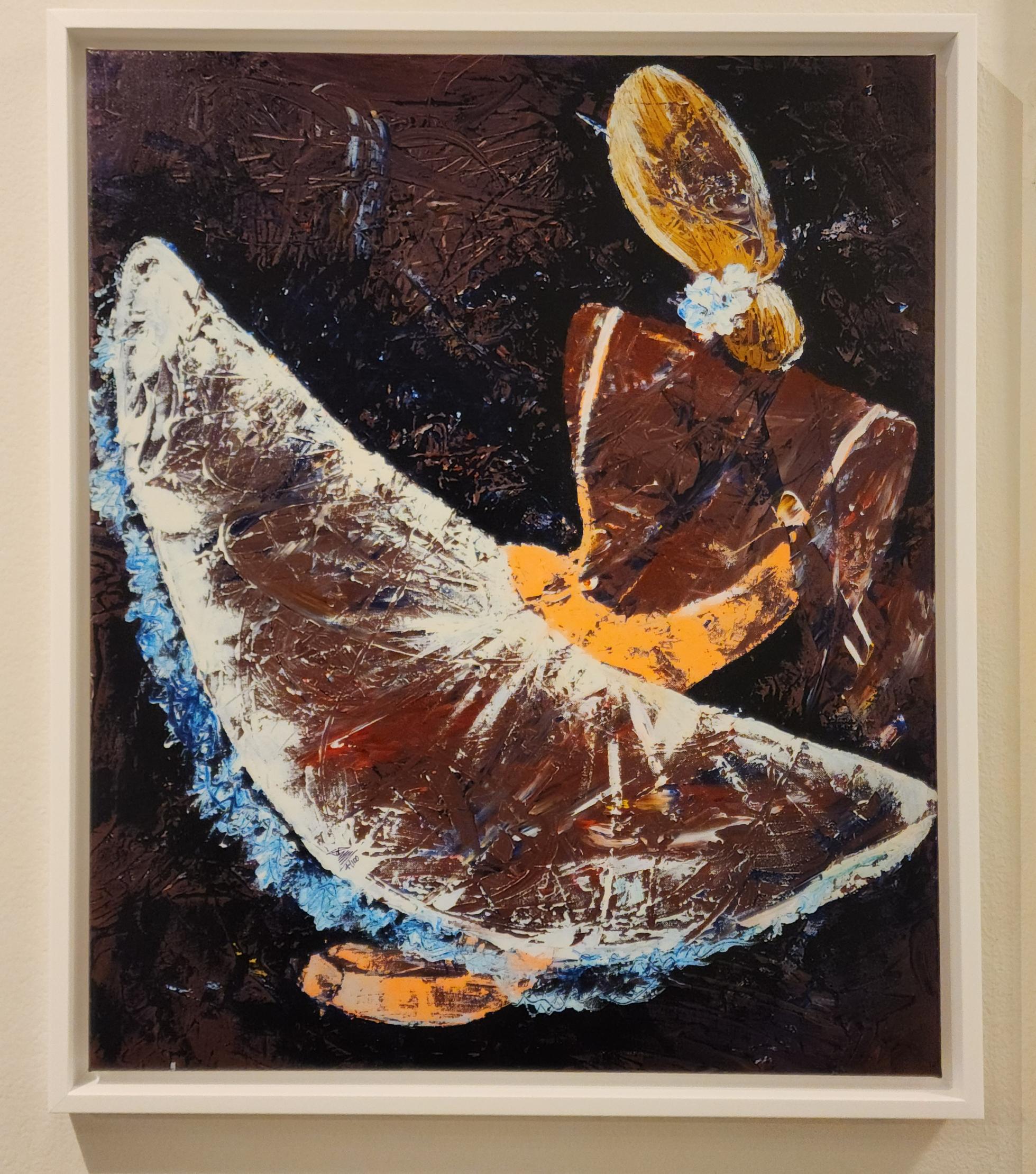 Description: Black Swan captures a fleeting yet powerful moment—a dancer caught mid-turn, her skirt sweeping in a wide arc as if brushing the air itself. Rendered in layered, expressive strokes, her figure emerges from a deep, textured backdrop like a memory taking shape. Subtle metallics, cool blues, and gestural brushwork convey both elegance and emotional depth. This piece distills motion and identity into pure, poised abstraction—poetry in form and finish.