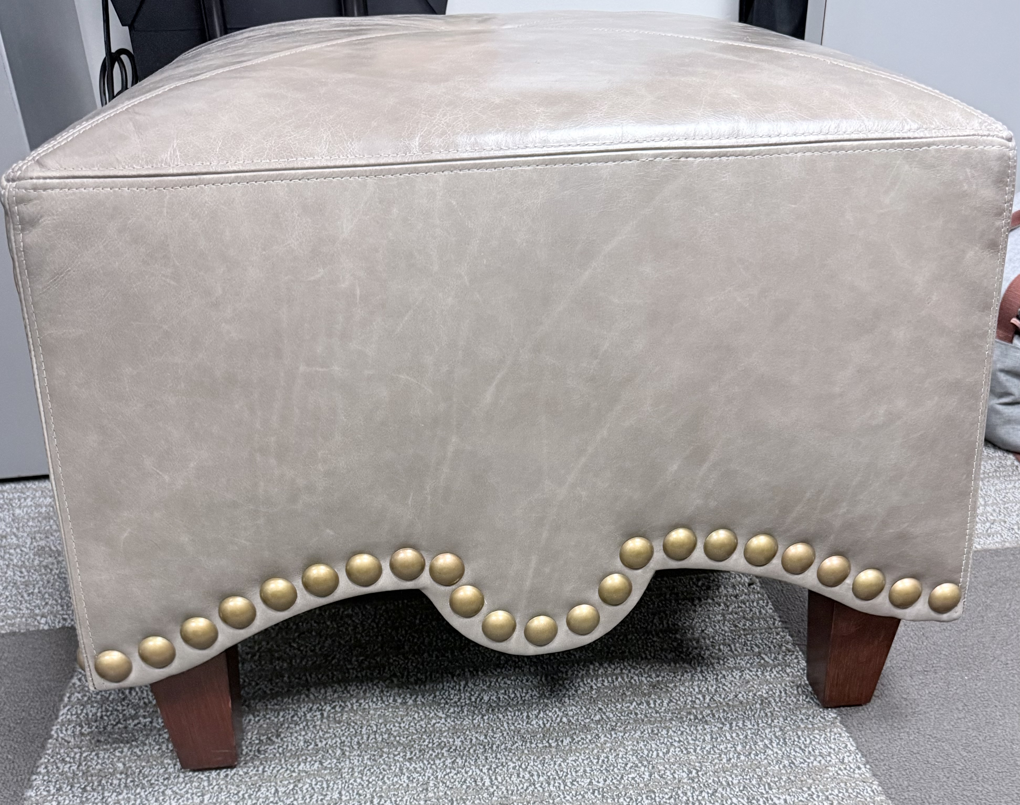 Add timeless sophistication to your space with this beautifully crafted leather ottoman, featuring classic brass nailhead accents and luxurious texture. Perfect as a statement piece or functional accent in any room.
